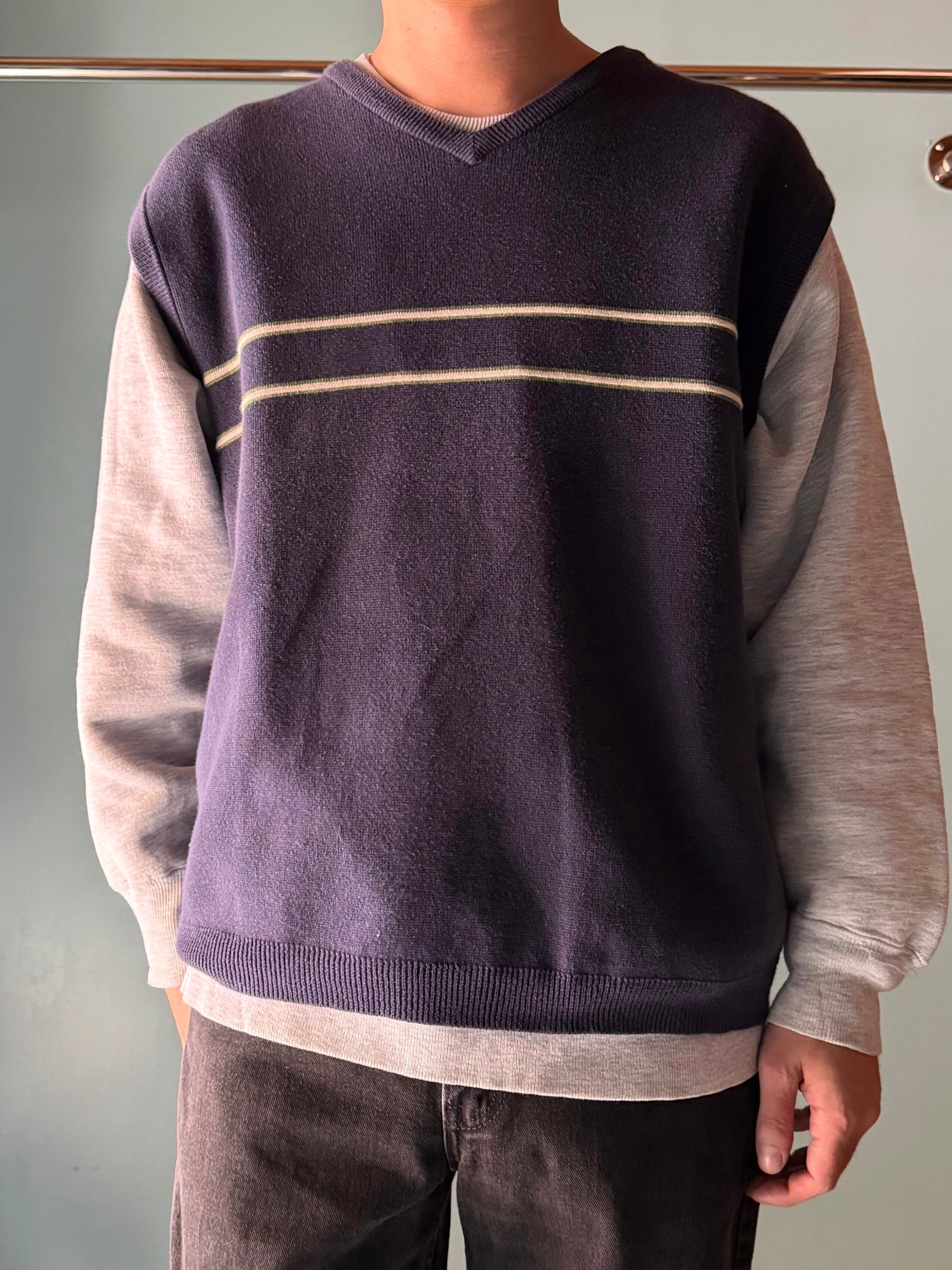 OLD NAVY “Line Cotton Vest” 00s オールドネイビー ベスト Vネック